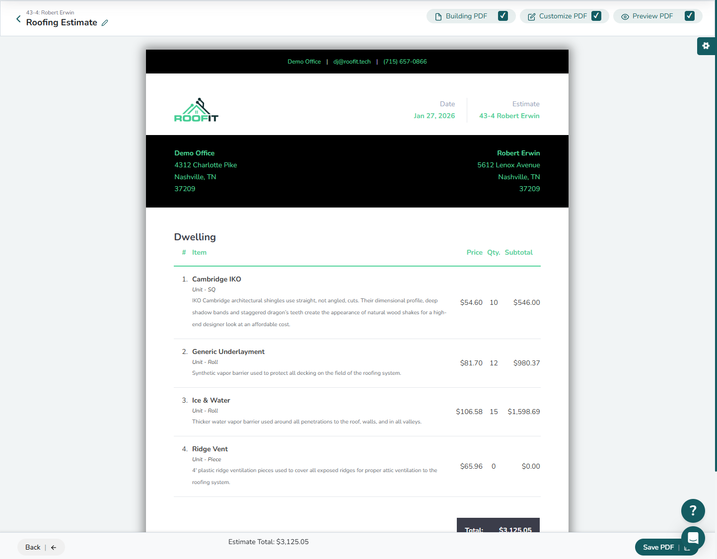 Let us show you how professional, customizable roofing proposal software can help you grow. Try RoofIT today and give your customers a proposal they’ll actually want to sign.