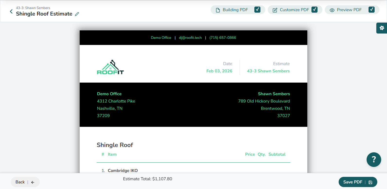 That means no more jumping between tools or chasing information. Instead of building roof estimates from scratch every time, you can: