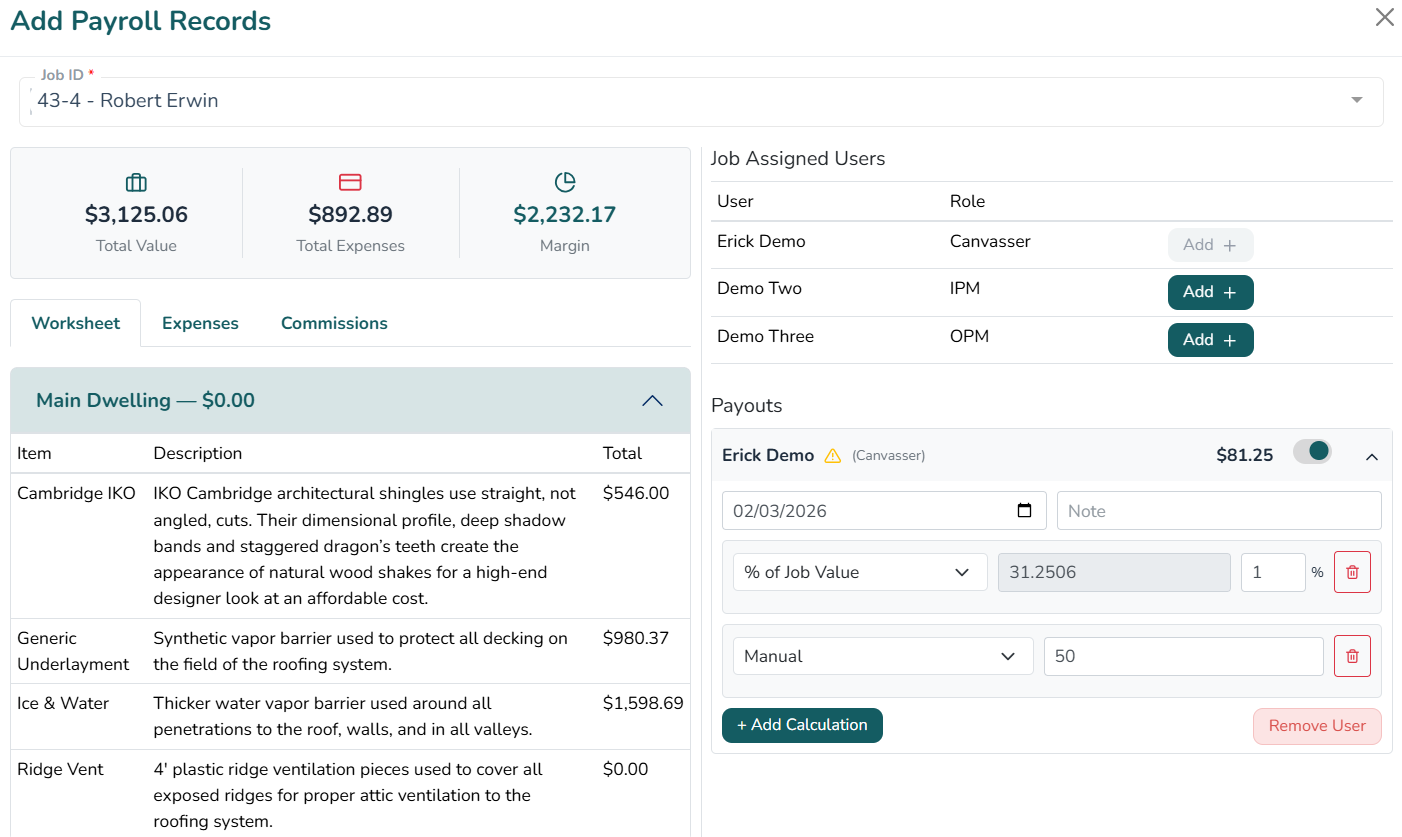 You define exactly how commissions should work for your business, and they are tied directly to the people assigned to the job, whether that’s a canvasser, sales rep, or another role on your team.